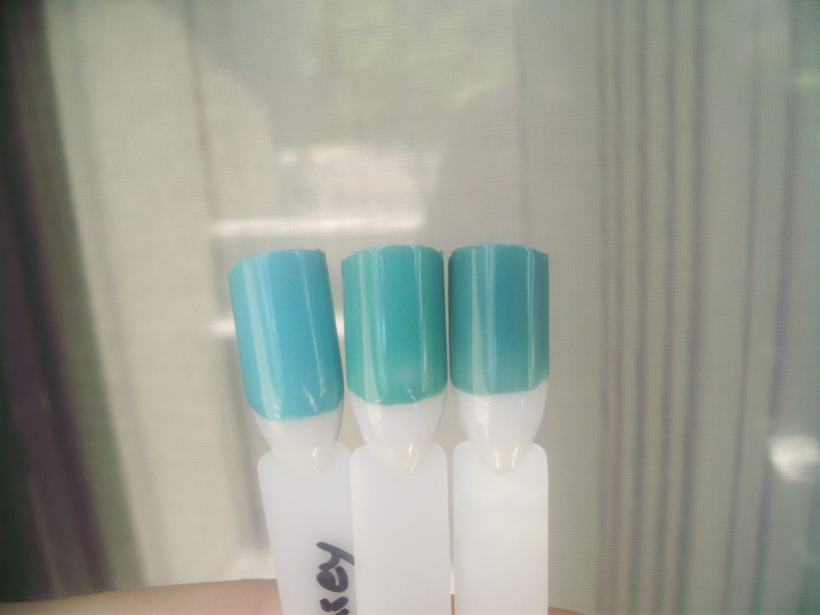 "Daphne" is darker than Zoya "Wednesday" and China Glaze "For Audrey'. The shade is inbetween the two, "For Audrey" is more blue and "Wednesday" is more green.